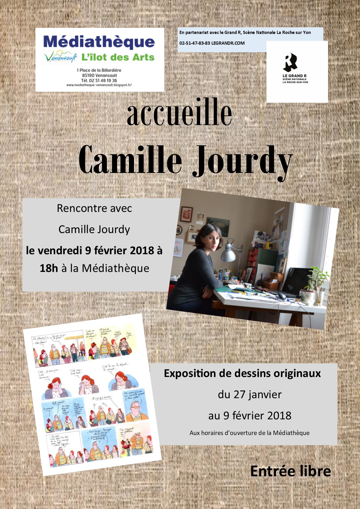 La médiathèque de Venansault, en partenariat avec le Grand R, scène nationale La Roche-sur-Yon, accueille Camille Jourdy, auteure-illustratrice notamment connue pour ses bandes dessinées 'Rosalie Blum' et 'Juliette, les fantômes reviennent au printemps'.