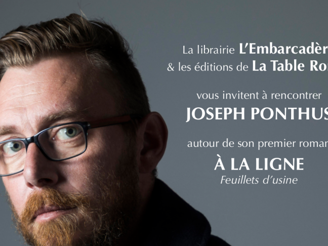 Nous avons le grand plaisir d'accueillir Joseph Ponthus à la librairie, pour son livre À la ligne aux éditions La table ronde, un vrai coup de coeur de la rentrée littéraire de janvier.Le narrateur, par ses pensées à la chaîne, écrites à la ligne, fait transpirer le labeur à l'usine où il effectue des missions d'interim.Une rencontre à ne pas manquer!Attention, places limitées, merci de vous inscrire au 09 72 45 05 30 ou contact@librairielembarcadere.com