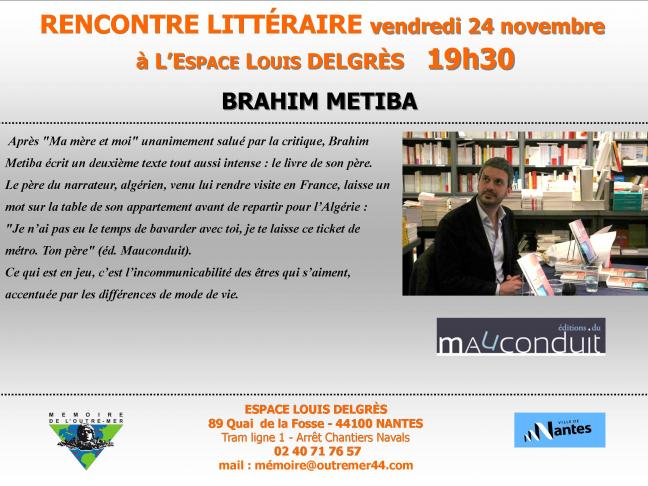 Après "Ma mère et moi" unanimement salué par la critique, Brahim Metiba écrit un deuxième texte tout aussi intense : le livre de son père. Le père du narrateur, algérien, venu lui rendre visite en France, laisse un mot sur la table de son appartement avant de repartir pour l’Algérie :"Je n’ai pas eu le temps de bavarder avec toi, je te laisse ce ticket de métro. Ton père" (éd. Mauconduit).