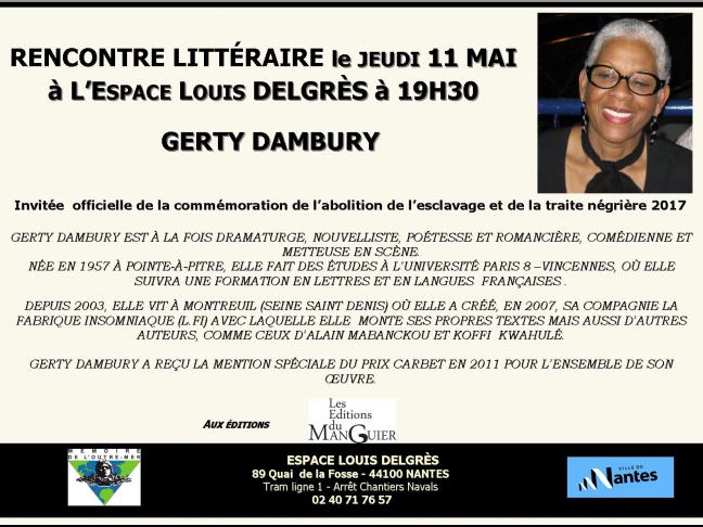 Dans le cadre de la commération de l'abolition de l'esclavage et de la traite négrière, Gerty Dambury est invitée officielle. Elle sera reçue le jeudi 11 mai à 19h à l'espace Louis Delgrès.