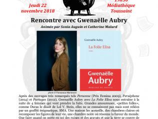Rencontre avec Gwenaëlle Aubry 22/11/2018 Pour le Troisième Bouillon de la saison, nous accueillerons Gwenaëlle Aubry le jeudi 22 novembre à 19h30 pour son roman La… Lire la suite Type d'événement Rencontre