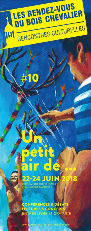 Cette dixième édition des Rendez-Vous du Bois Chevalier se déroulera les samedi 23 et dimanche 24 juin 2018 à Legé, en Loire-Atlantique méridionale. Forts du succès des neuf éditions précédentes et tout particulièrement de l’édition 2017, l'Association Les Amis de la Forge et du Bois Chevalier a à cœur de pérenniser cette manifestation culturelle, scientifique et musicale, dont la vocation est de mêler les publics et de favoriser les échanges autour de grands thèmes de société.