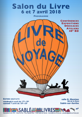 Autour du thème du voyage, expositions, concours de Carnet de voyages, conférences, lecture, atelier dessin, rencontres et dédicaces animeront Sablé-sur-Sarthe pour la 13e édition de son Salon du livre organisé par Sablé sur Livres.