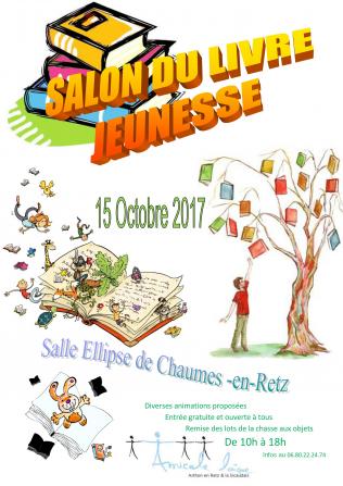 L’Amicale Laïque organise pour la 3ème année consécutive, son salon du livre jeunesse, le dimanche 15 octobre 2017, salle Ellipse de Chéméré à CHAUMES EN RETZ.