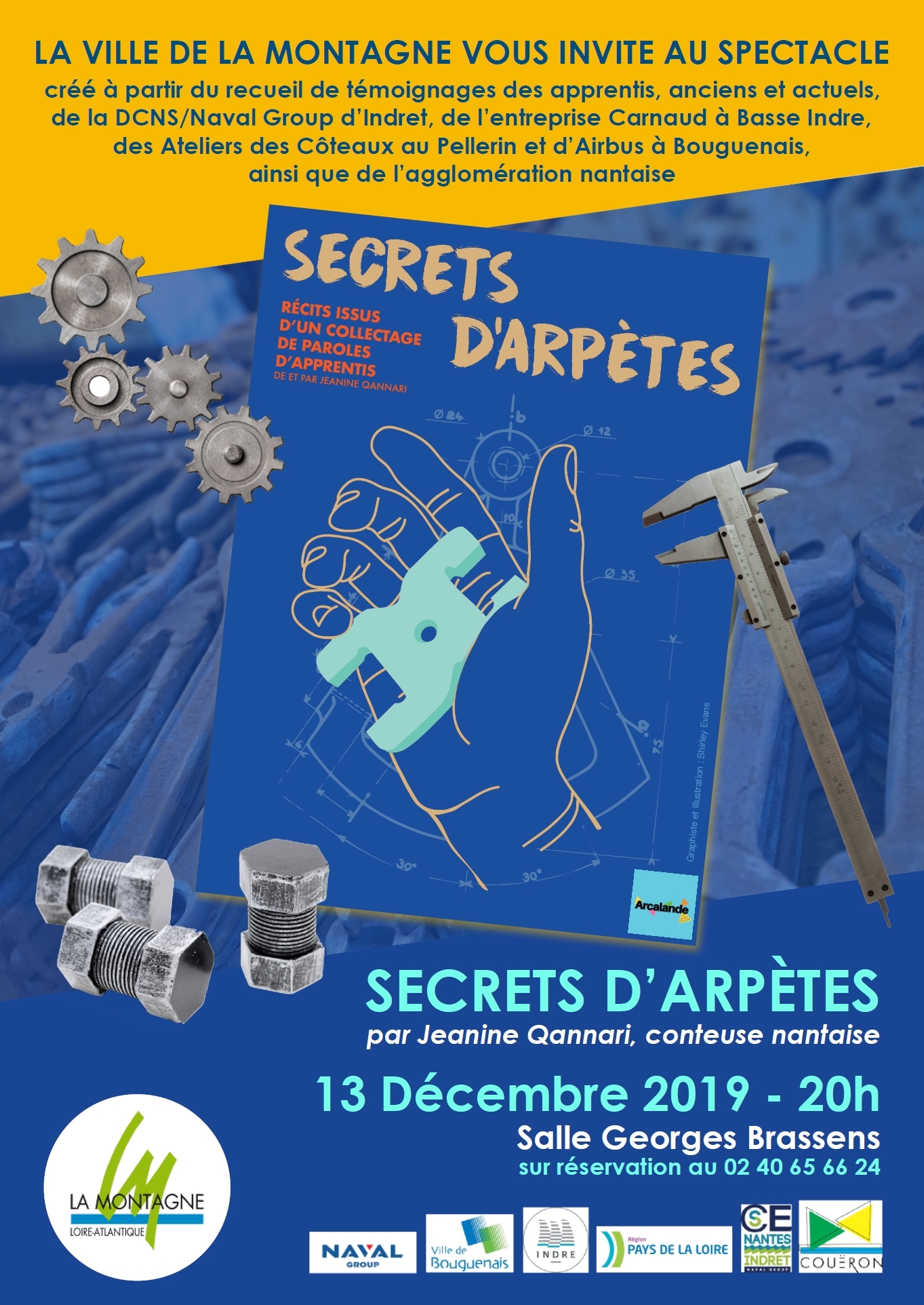 Son tout dernier spectacle, Secrets d'Arpètes, est ainsi issu du collectage des souvenirs des apprentis, anciens et actuels, de la DCNS/Naval Group d'Indret, de l'entreprise Carnaud à Basse Indre, des Ateliers des Coteaux au Pellerin et d'Airbus à Bouguenais ; sans oublier ceux en formation industrielle sur l'agglomération nantaise.
