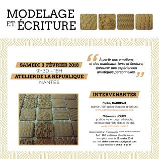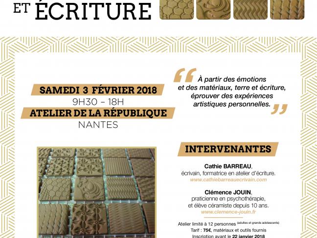 Intervenantes : Cathie Barreau, écrivain, Clémence Jouin, élève céramiste depuis 10 ans et praticienne en psychothérapie.
