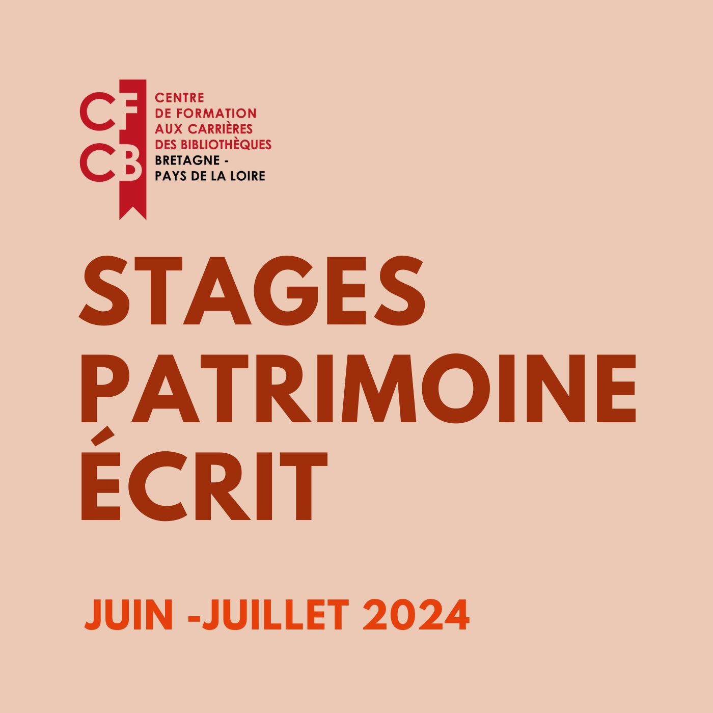 Le CFCB Bretagne - Pays de la Loire propose avant les vacances d'été deux stages sur la thématique du Patrimoine écrit :