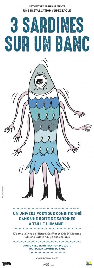 Assis sur un banc, « serrés comme des sardines », les spectateurs prennent part au dialogue insolite de trois sardines qui évoquent avec gourmandise le monde extérieur.