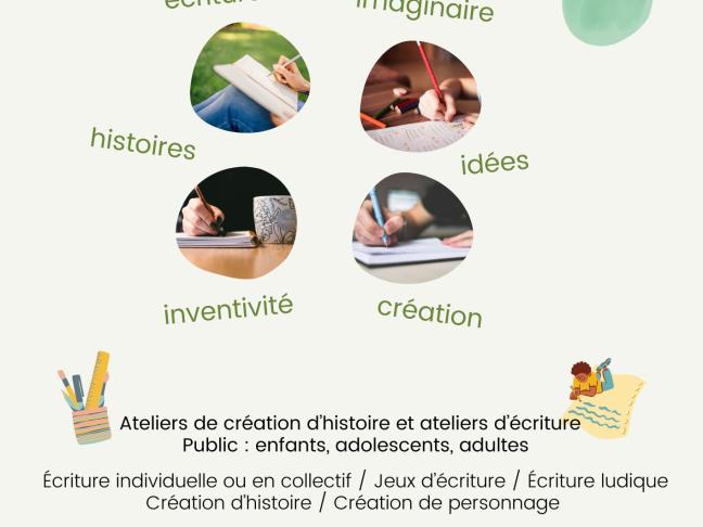 Écriture d’histoire collective / Écriture en individuel au sein d’un groupe / Jeux d’écriture / Écriture ludique / Création d’histoire / Création de personnage.