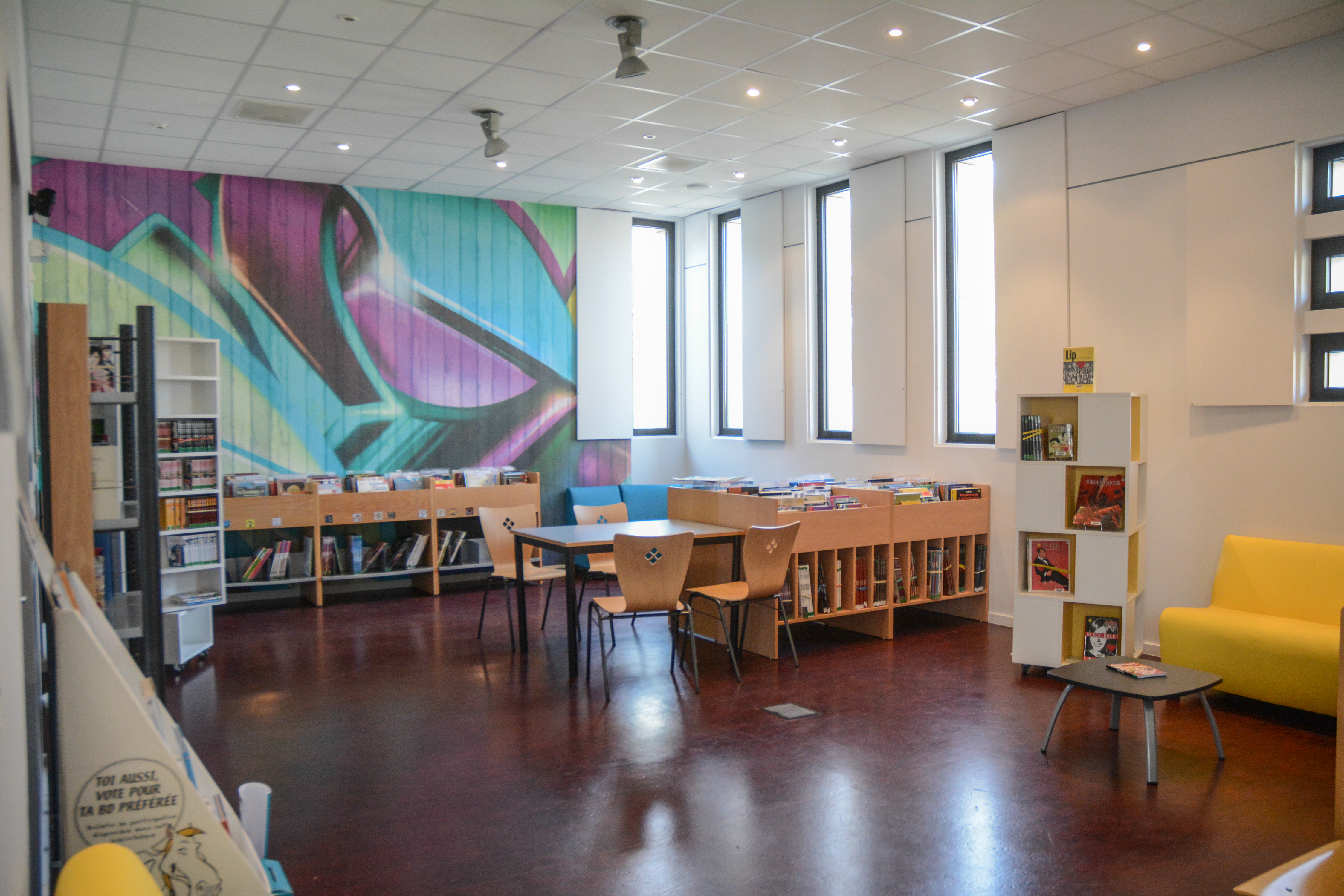 <p>Un lieu public ouvert à tous pour consulter librement les documents disponibles, les emprunter, pour travailler ou se détendre.</p><p>De grands espaces lumineux avec de nombreux documents : romans, documentaires, BD, albums, CD, revues... pour tous les âges et un accès au wifi gratuit.</p><p>L'inscription es gratuite et donne accès à toutes les ressources du réseau, soit 29 équipements.</p><p>Une équipe de 3 bibliothécaires et de bénévoles sont là pour vous accueillir et vous conseiller.</p>