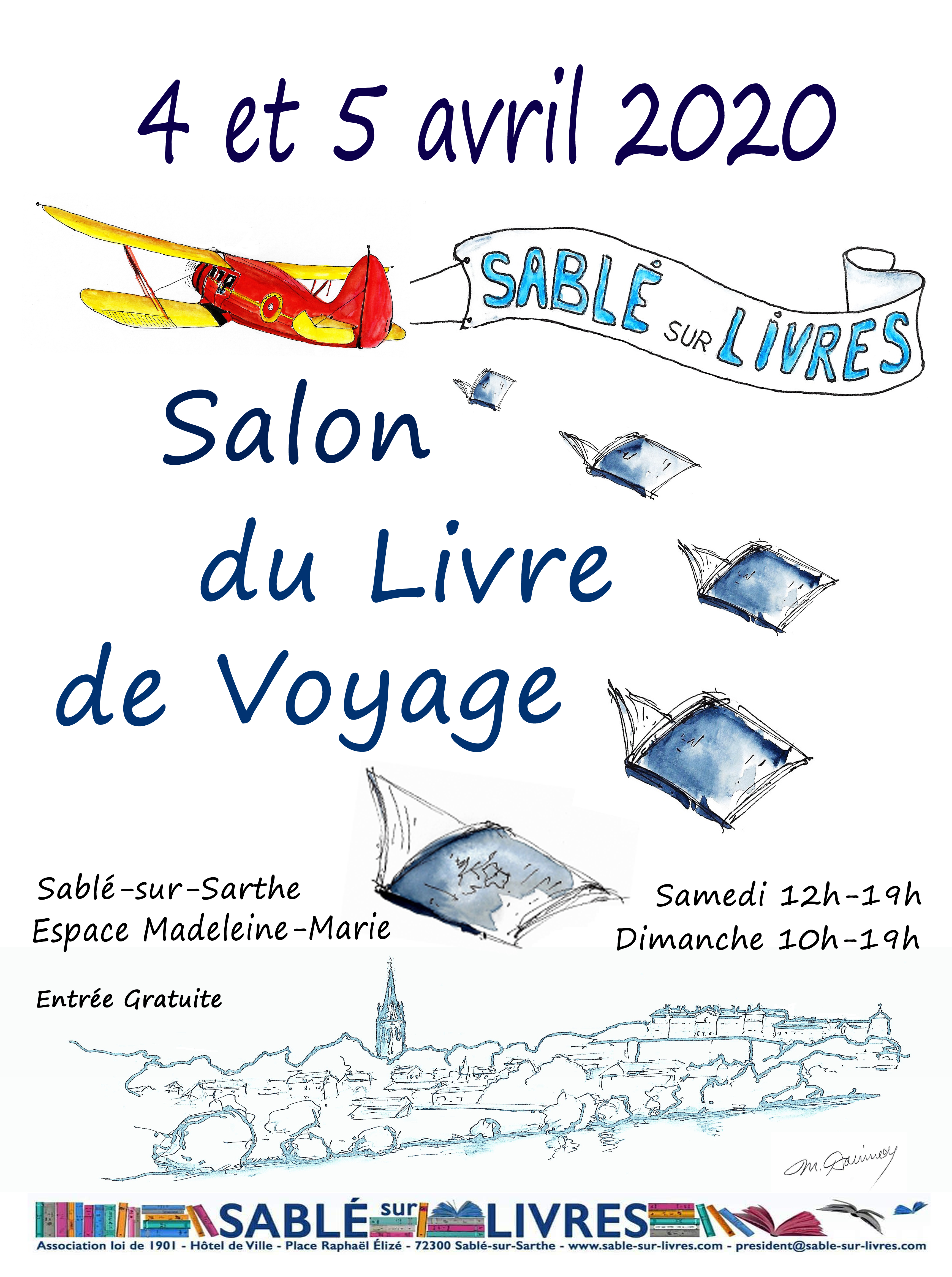 <p>Depuis plusieurs années, l'association Sablé-sur-Livres oeuvre pour susciter et développer le goût de la lecture auprès de toutes les générations.</p><p>C'est avec ce principal objectif qu'au fil des années, nous avons proposé des animations diverses et variées à destination de tous : des rencontres, des ateliers d'écriture, des balades autour du livre, une bourse d'échange de livres et un salon du livre tous les deux ans.</p><p>Notre salon du livre est le point d'orgue de tout ce travail. Il permet à un large public de se retrouver autour de l'écrit. Il propose des rencontres d'auteurs, des tables rondes, des concours de carnets de voyages, des expositions, des ateliers sur le salon et en marge du salon.</p><p>Attentifs à toujours nous positionner comme une association intégrée dans le tissu local, l'ensemble de nos actions se fait en partenariat avec la ville, les organismes institutionnels, les associations locales et de nombreux partenaires privés.</p><p>Depuis 2014, le salon s'est spécialisé dans le domaine du livre de voyage sous toutes ses formes : récits, carnets, bandes dessinées, romans, etc.<br /><br />La 14e édition du salon se déroulera sur 2 jours, les 4 et 5 avril 2020, précédée le vendredi 3 avril par des interventions d'auteurs dans les établissements scolaires ayant participé au concours de carnets de voyage organisé par l'association. </p><p><strong>Au programme :</strong></p><p>Des expositions avant et sur le salon<br />Un spectable au Centre Culturel, en partenariat avec l'Entracte, <em>Si Loin, si proche,</em> le samedi soir<br />Des ateliers écritures, BD, Carnet de voyage, calligraphie etc...<br />Des tables rondes et conférences</p><p><strong>Horaires d'ouverture :</strong></p><p>Samedi 12:00-19:00<br />Dimanche 10:00-18:00<br />Entrée libre et gratuite</p>