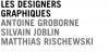 <p>LES DESIGNERS GRAPHIQUES est un atelier constitué de Antoine Groborne, Silvain Joblin et Matthias Rischewsk, trois graphistes-auteurs collaborant depuis 2006.<br />Nos champs d’interventions sont le graphisme institutionnel, culturel et le secteur de l’enseignement supérieur.<br />Nous concevons des signalétiques de bâtiments, créons des identités visuelles et réalisons des supports d’édition papier ainsi que des dispositifs numériques.</p>
