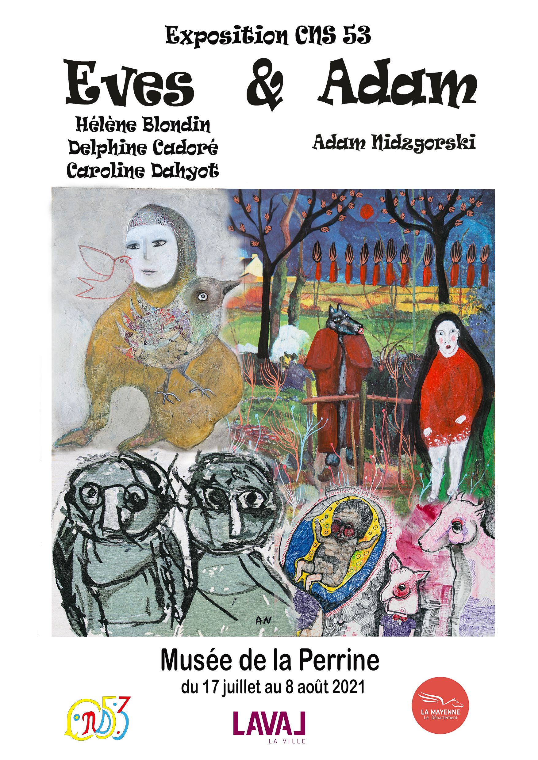 <p><span>Eves et Adam</span></p><p><span>Hélène Blondin, Delphine Cadoré, Caroline Dahyot, Adam NidzgorskiLaval, musée de la Perrine</span></p><p><span>du 18 juillet au 8 août 2021Au jardin des origines</span></p><p><span> </span>Sept années nous séparent de l’exposition consacrée à Adam Nidzgorski, initiée par Antoinette Le Falher au MANAS, musée d’art naîf et des arts singuliers, où une part belle fut faite aux œuvres textiles. Adam garde un excellent souvenir de son passage à Laval, affirmant régulièrement vouloir y revenir. Amis de longue date, nous nous fréquentions déjà au début des années 1990 du côté du marché de la place Jeanne d’Arc à Paris, avec en partage la création artistique et la Pologne où je venais de passer trois ans. Je me promettais de le faire revenir à Laval, Adam me rappelant qu’il commençait à prendre de l’âge !</p><p><span> </span>Depuis l’exposition de 2014, j’ai continué de suivre l’itinéraire artistique d’Adam Nidzgorski, renouvelé et enrichi de nouvelles œuvres et découvertes. Notre association CNS a souhaité proposer cette année un éclairage sur son travail avec des œuvres phares de son parcours, et les mettre en relation avec le travail d’autres artistes, en jouant avec les différences et les ressemblances.</p><p>L’univers féminin compte pour beaucoup dans la vie d’Adam, lui qui entretient avec les femmes une relation de confiance et d’attirance mêlées. Avec elles il a tissé l’écheveau d’une riche coopération, que ce soit dans le domaine du sport, dans l’entraînement des premières équipes féminines de gymnastique ou de judo en Tunisie et en Pologne, ou dans la création artistique, avec les œuvres textiles cousues main par sa femme Catherine ou bien la rencontre dans les années 1980 avec des tisserandes tunisiennes ainsi que la collaboration avec Zina Mbarek à qui il confie des œuvres originales pour qu’elle en restitue une version tissée. L’exploration d’autres possibilités textiles s’est étendue à d’autres collaborations, certaines masculines, notamment avec l’artiste François Yémadjê, qui lui a fait découvrir les appliqués béninois, assemblages de tissus avec des points discrets, et avec qui plusieurs œuvres ont été réalisées.</p><p>Partant de sa complicité avec le travail des femmes, nous avons eu l’idée d’entourer l’œuvre d’Adam de celle des trois créatrices et de proposer, comme nous aimons le faire, un dialogue entre les œuvres, entre les artistes, avec le public.</p><p><span> </span>L’association CNS a tissé un réseau de correspondance avec d’autres structures soutenant l’art non académique dans la région, principalement avec François Chauvet et le Hang’art à Saffré, Laurent et Laurence Fallot et leur association LFLF2015 à Saint-Malo-de-Guersac , mais aussi hors de la région le musée de la Création Franche à Bègles. C’est dans ces lieux que nous avons découvert et apprécié les trois créatrices sollicitées pour exposer avec Adam : Hélène Blondin, Delphine Cadoré, Caroline Dahyot. Nous poursuivons ainsi l’une des missions que nous nous sommes données en faisant connaître localement des créateurs œuvrant hors du département, ces trois artistes étant exposées pour la première fois en Mayenne.</p><p><span> </span>Nous avons sélectionné les œuvres présentées selon des correspondances possibles. La figure humaine y occupe une place de choix, sinon pour Adam toute la place. </p><p>Les quatre approches surtout interrogent l’acte de création. Acte unique, engagement de tout son être, qui fait dire à Caroline par exemple qu’elle n’est aucunement guidée par des considérations esthétiques mais par une recherche de protection, les éléments de son œuvre faisant figure de talismans. Même engagement pour Adam, chez qui l’acte de création intervient à un moment propice, celui de se sentir habité, d’être porteur d’une nécessité. Une fois l’œuvre accomplie, il aura la sensation d’être vidé après avoir tout donné. Nulle innocence chez lui, lucidité au contraire portée par des regards apeurés ou inquiets qui interrogent le monde, qui questionnent la vie.</p><p><span> </span>Chez Delphine Cadoré une attirance pour les arts primitifs est manifeste. Ses créations oscillent entre récit des origines et conte de fées, ce que confirme la présence du loup, des oiseaux de nuit, présences totémiques de visages humains, postures rituelles magiques d’êtres hybrides. Ces représentations favorisent les constructions mentales nourrissant l’imaginaire. Les couleurs, intenses, évoquent les éléments constitutifs du monde en création, l’eau, la terre, le feu, l’air.</p><p><span> Avec ces quatre démarches c’est l’origine même de l’art dans sa conception intrinsèque qui est approchée. Avec elles, il nous est offert de sentir l’origine de tout acte créateur, l’œuvre dans toute son originalité, parce que, les apparences étant trompeuses, nul ne saurait se confondre ni se comparer avec autrui, nulle œuvre ne saurait se ressembler, chaque parcourt artistique, expression d’une sensibilité vécue intimement, ne peut se résoudre en comparaison. </span></p>