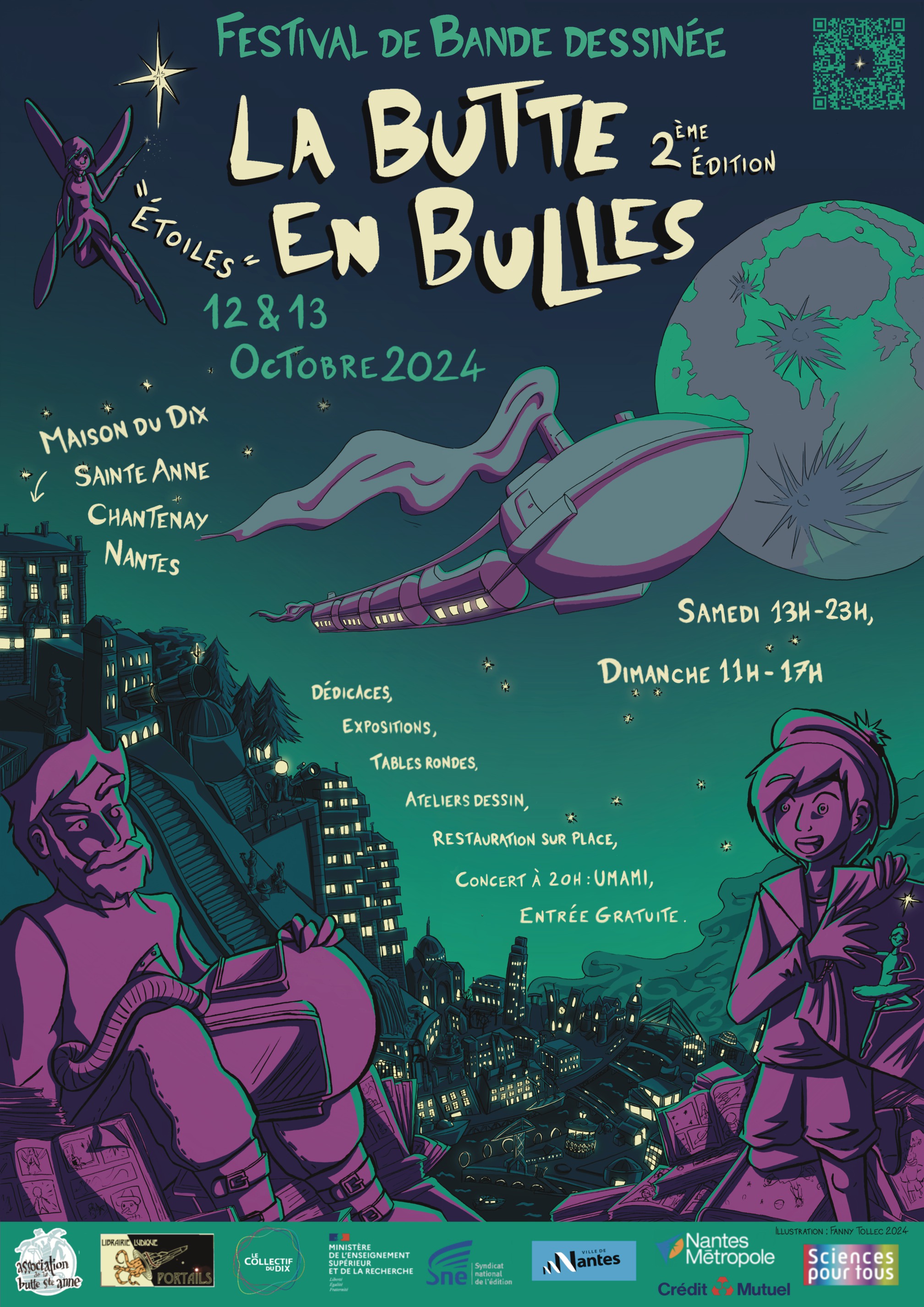 <p>Festival BD La butte en bulles</p><p>Le thème choisi pour cette 2e édition du festival BD "La Butte en Bulles" est <strong>"Étoiles"</strong>, un sujet fascinant aux multiples interprétations.</p><p>Les étoiles, qui nous guident, nous font rêver ou symbolisent raffinement culinaire, ordre ou rayonnement artistique, sont intégrées dans toutes les cultures de l’humanité. Un thème riche que les organisateurs ont choisi d'explorer en invitant <strong>cinq auteur·trice·s talentueux·euses</strong>.</p><p>Cette nouvelle édition du festival BD offre au public un voyage graphique et narratif, explorant notre rapport à la société et au monde qui nous entoure.</p><p><strong>Venez découvrir le festival et laissez vous emporter par l’univers étoilé de la bande dessinée !</strong></p><p><strong>Au programme du week-end :</strong> rencontres et dédicaces, expositions, déambulations, surprises, ateliers création BD pour les enfants, coloriages, vente de livres par la librairie Portails, buvette et petite restauration.</p><p>La Maison du Dix nous accueille pour 2 jours de fête autour de la création graphique et l’illustration. Une initiative de l’ABSA et d’un collectif d’habitant.es du quartier Chantenay.</p>
