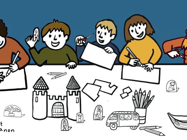 Je conçois et dessine des maquettes en papier et des cartes Pop-up pour les enfants.