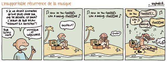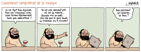 "Au départ je pensais aborder d'une manière décalée la thématique de l'histoire de la musique", confie Raphaël Beuchot, "mais je voulais surtout faire rire, pas vraiment instruire. J'ai donc préféré élargir le thème à la musique en général, ce qui me permet de proposer une plus grande variété de strips, et de surprendre d'avantage le lecteur."