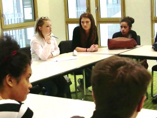 (Vidéo : Le débat final - Lieu: salle des actes du Lycée du Pays de Retz, 1 rue Georges Charpak, Pornic Date: jeudi 12 novembre au matin Élèves visibles à l'image de gauche à droite (en gras ceux qui prennent la parole): Tamara Lebon (de dos), Eva Guérin, Loann Kermarec, Bruna Jeannot, Coralye Cordon, Gwendoline Gauven, Manuella Le Valligant, Julia Feuvry, Camille Etrillard, Marie Mahé, Amy Ly, Inès Bruneau, Lucie Kleiber, Morgane Leveau et Manon Dauloudet (debout), Goulwen Kerneguez, Amélie Huet; les autres élèves sont de dos et n'ont pas de visages visibles : Théo Bernier, Clarisse Crain, Elizaveta Gorobets, Loona Nogues.)
