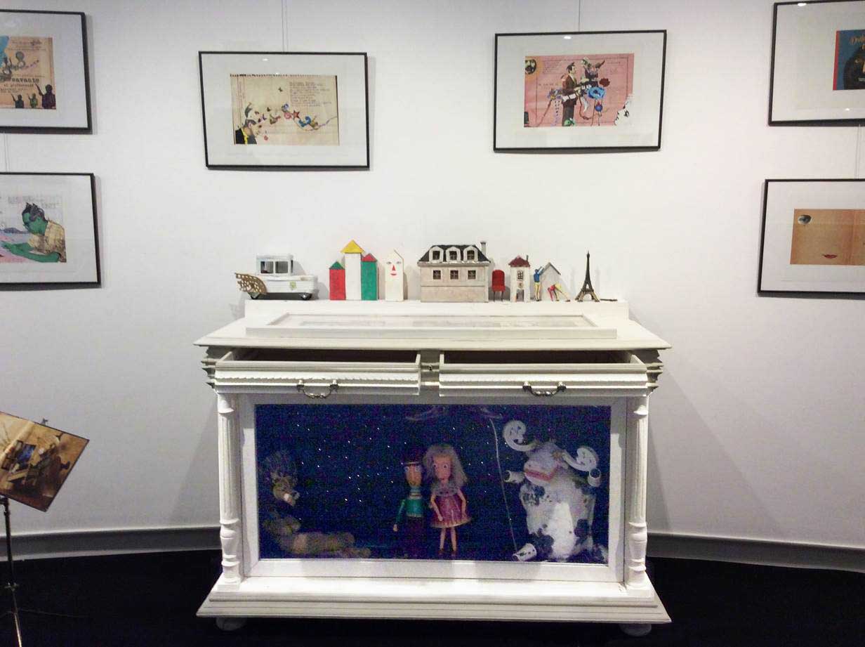 17 ans de travail pour ce touche-à-tout qui se définit lui-même comme « fabricolleur d’images » et qu’un morceau de bois ou un ressort peuvent émouvoir ! Entre croquis de préparations d'album, sculptures ou illustrations originales, l’exposition propose un univers poétique et surréaliste que l’on retrouve dans ses neuf albums jeunesse édités chez Didier, l’Initial et l’Élan Vert.