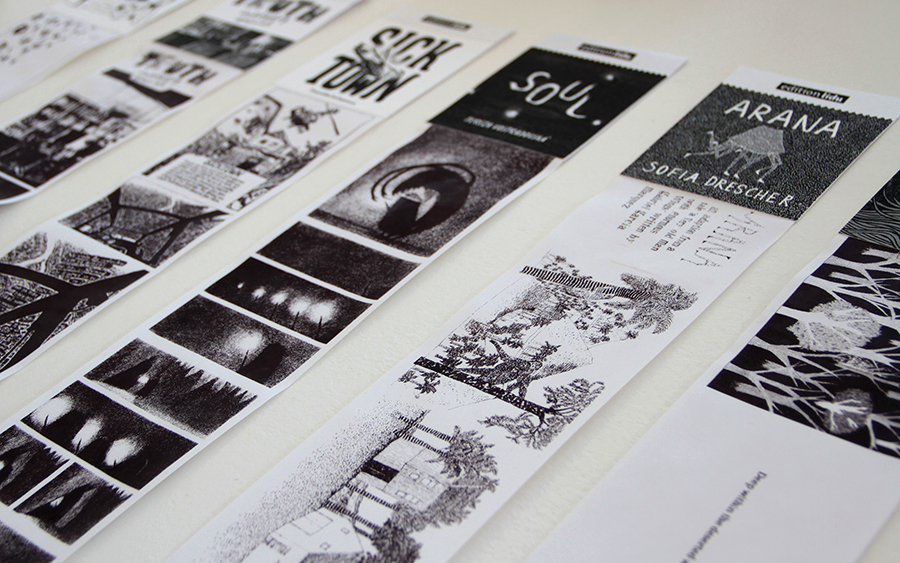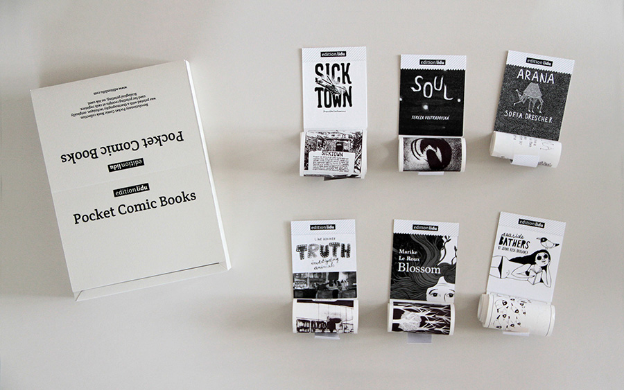 À ce jour, 6 artistes/auteurs principalement européens (Portugal, Angleterre, République Tchèque, Allemagne, Afrique du Sud) ont joué le jeu de ce support original qui demande une vraie adaptation de leurs univers. Un objet mi-pragmatique mi-expérimental dont la narration n’est pas sans rappeler celle de la pellicule de cinéma ou des flipbooks.
