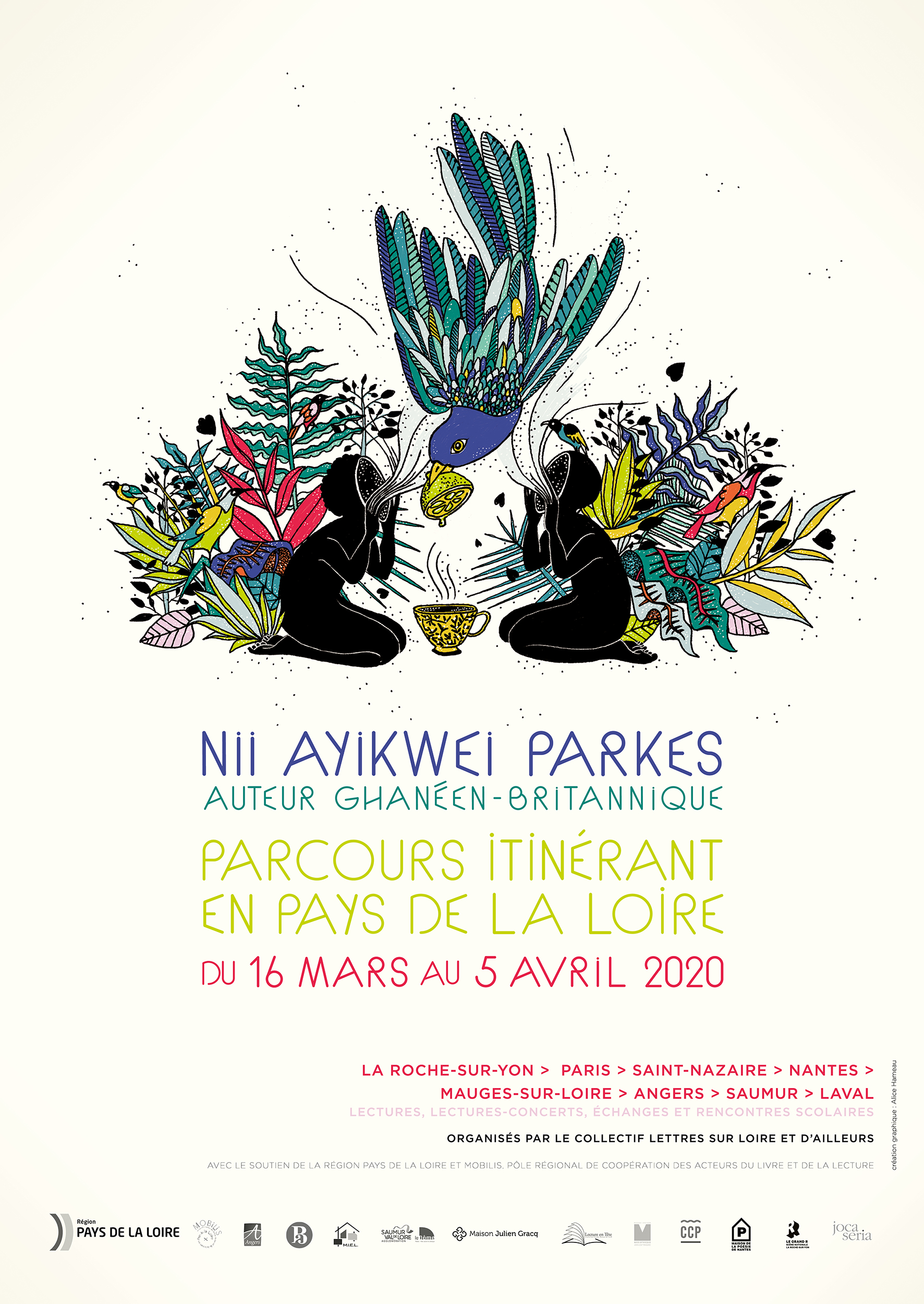 Neuf structures régionales réunies sous le nom de Collectif Lettres sur Loire et d’ailleurs conjuguent leurs efforts et leurs spécificités pour accueillir en Pays de la Loire un écrivain venu d’ailleurs. Cette invitation, renouvelée régulièrement, vise à promouvoir auprès des publics ligériens une œuvre essentielle mais trop méconnue et qui, au delà des genres littéraires, se construit dans une pluralité d’écritures.