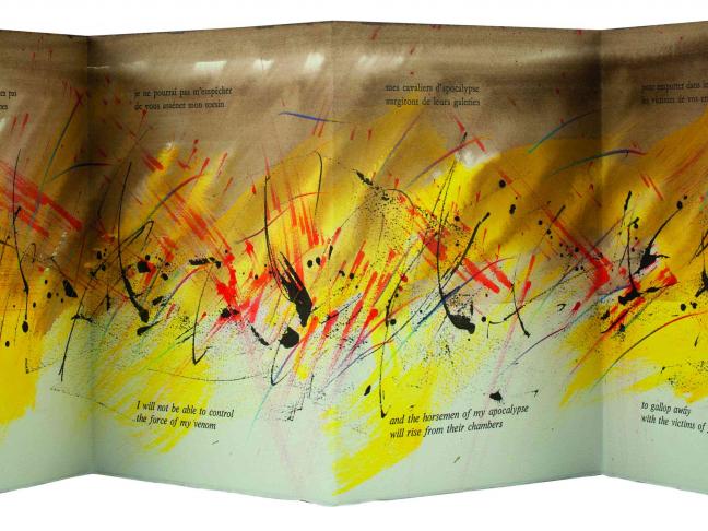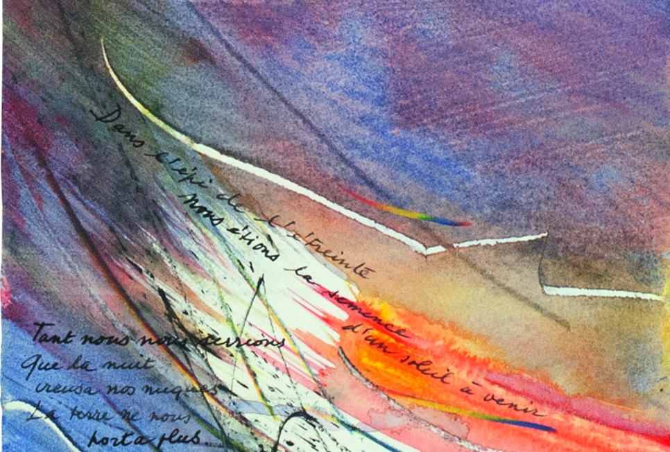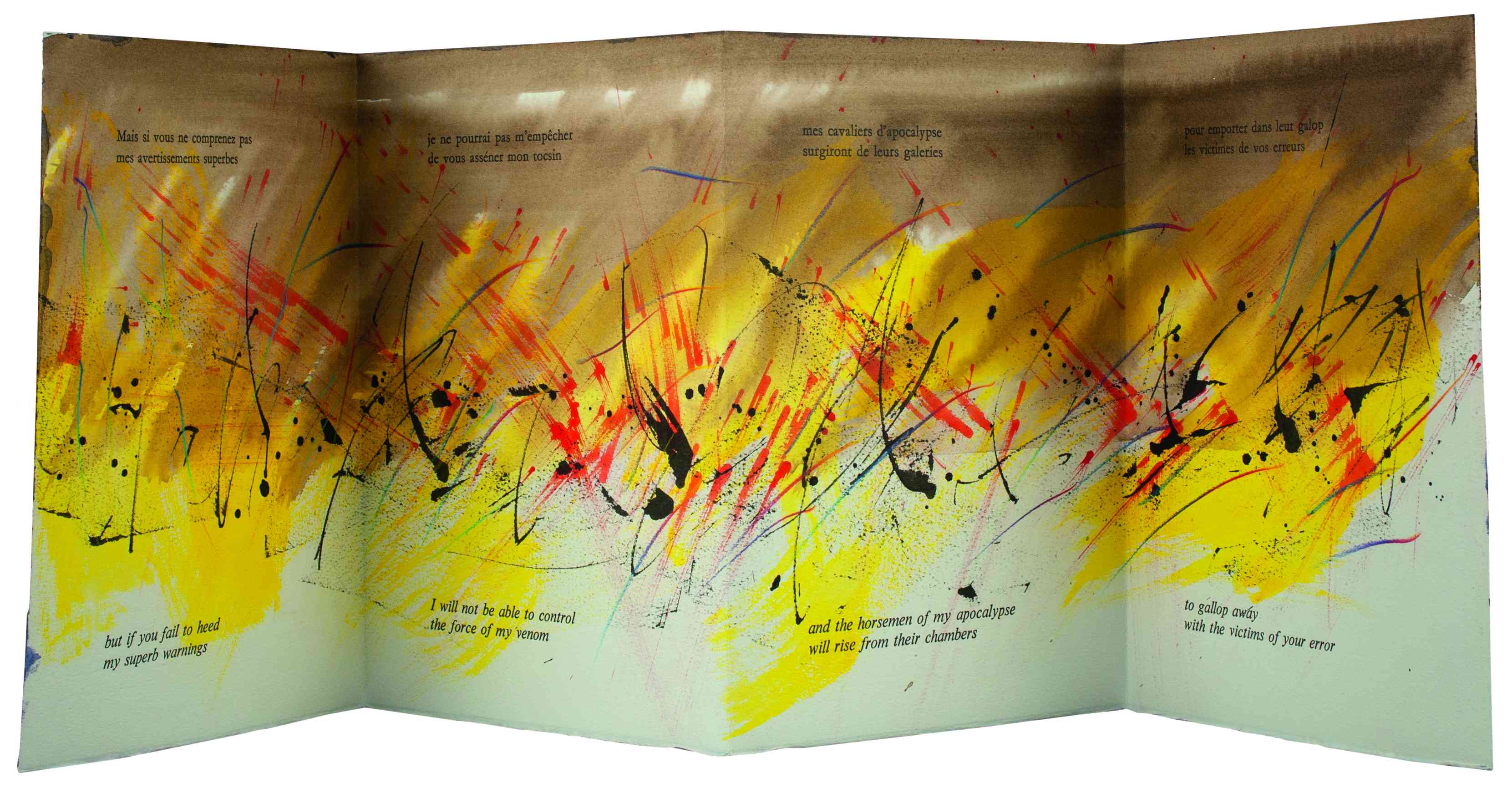 Julius Baltazar prend l’initiative des livres de dialogue. Ces livres qu’il illustre, ces feuilles sur lesquelles prennent vie de tempétueux paysages cosmiques, il les confie, en deux ou trois exemplaires, au soin de ses amis poètes, en attente du Verbe.