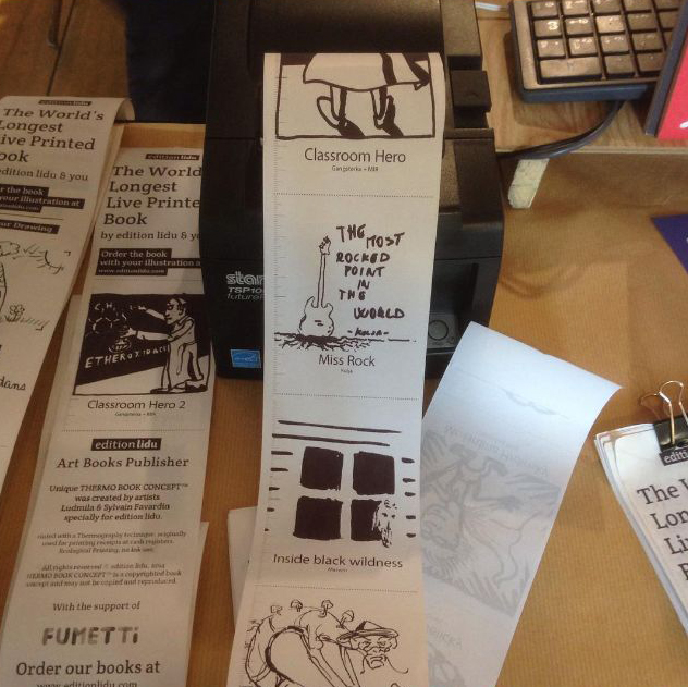 Édition Lidu. De la BD sur véritable ticket de caisse. Le rouleau peut aller jusque 5 mètres de long.