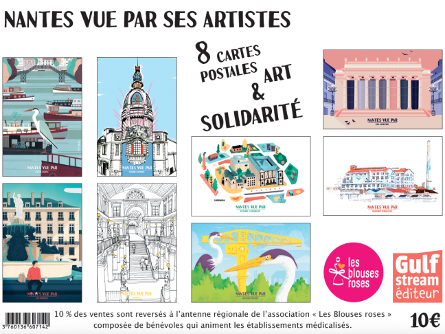Cela fait déjà 30 ans que Gulf stream propose de la carterie en complément de son activité d'édition jeunesse. Nouveauté en 2017 : l'éditeur publie une série de 8 illustrations d'artistes nantais dont une partie des ventes est reversée à l'association Les Blouses roses, qui intervient dans les hôpitaux pour apporter aux malades un peu de distraction et de bon temps.