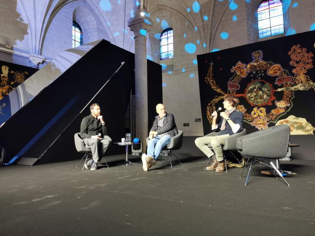 Avec Fabien Vehlmann, auteur et scénariste des séries jeunesse Spirou et Fantasio et Seuls. Fabien Vehlmann a déjà scénarisé une quarantaine d’albums en moins de vingt ans de carrière. Il est aussi de ces auteurs qui prennent part aux projets collectifs audacieux et est, avec Gwen de Bonneval, Brüno, Cyril Pedrosa et Hervé Tanquerelle, un des fondateurs de la revue de bande dessinée numérique Professeur Cyclope.