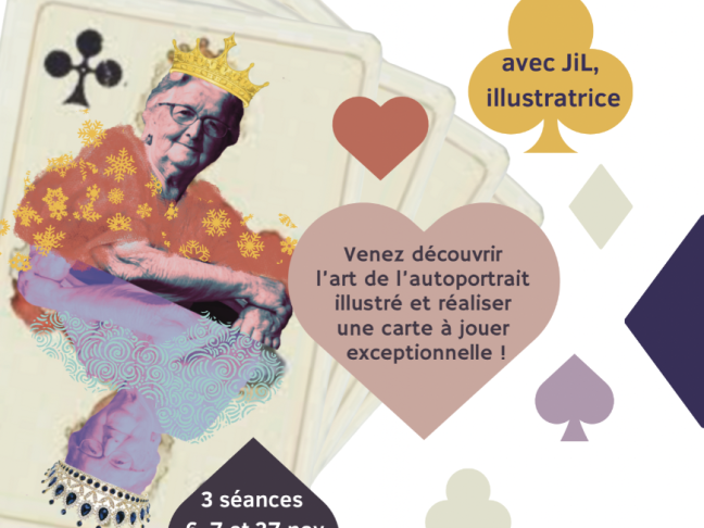« Venez découvrir l’art de l’autoportrait illustré et réaliser une carte à jouer exceptionnelle. »