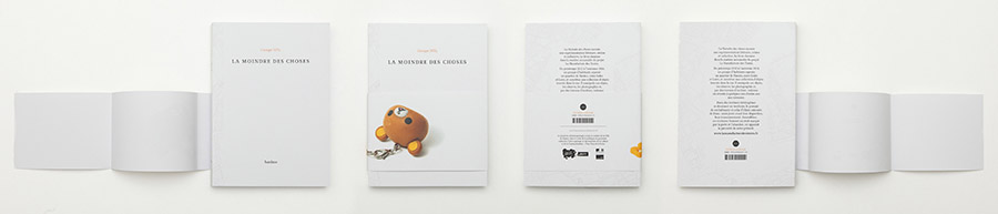 Et ce qui vient la parfaire, c’est le soin apporté à la conception et à la réalisation de l’objet éditorial : à l’opposé du "vite fait mal fait" qu’on s’imagine parfois, à tort, répondre correctement à une commande publique, le livre paru chez Bardane est magnifique, depuis la police jusqu’à l’iconographie (photos pleine page, sur fond immaculé, des objets considérés, en accord avec l’effet de rénovation que leur provoquent les textes produits), en passant par les extensions (flyers dépliants, ou couverture détachable comme on peut la voirsur les photos d’illustration sur cette page).