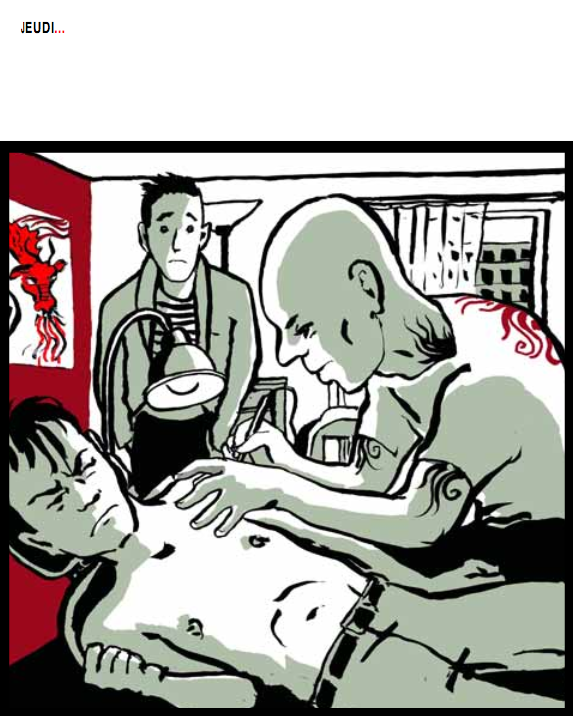 Zaü travaille au pinceau, ainsi son trait donne des images expressives, adoucies par la souplesse de son geste. Plutôt descriptive, elles s’attachent à nous montrer les portraits des personnages et des lieux et forment comme un storyboard. Ce choix de déployer ses cases sur tout l’espace de la double page dans des format divers dynamise le propos: carrés, hauteurs, largeurs, petites vignettes alternent les points de vue, donnent du rythme. Dans ce montage de leur ouvrage, les auteurs convoquent le cinéma tout autant que le théâtre.