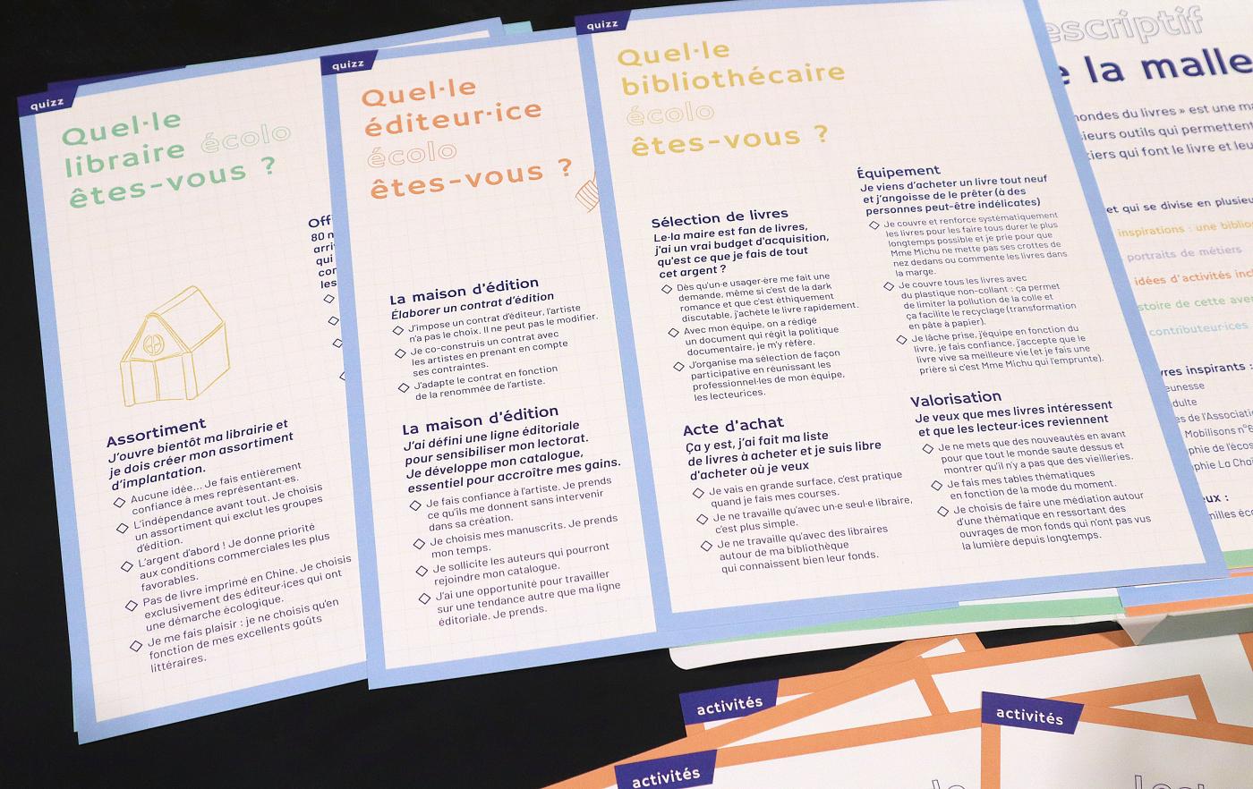 Cette mallette peut être agrémentée de nouveaux supports afin de poursuivre la réflexion, qui est en évolution continue à l’échelle de l’interprofession. Toutes les personnes qui s’en emparent peuvent la compléter ou retenir seulement certains éléments en fonction du public à qui elles s’adressent, de la durée ou du lieu de déploiement de l’objet. Nous l’avons imaginée comme un objet évolutif, modulable, léger, simple, qui peut être transporté sur des festivals, dans des bibliothèques, écoles ou lors de journées professionnelles. Elle existe en version numérique imprimable de partout. Tout est expliqué pour une utilisation complète.