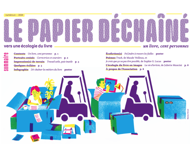 L'idée de l'Association pour l'écologie du livre est de remonter le temps et la chronologie de la naissance d'un ouvrage en créant plusieurs gazettes qui retracent toutes ses étapes et leurs questions inhérentes.
