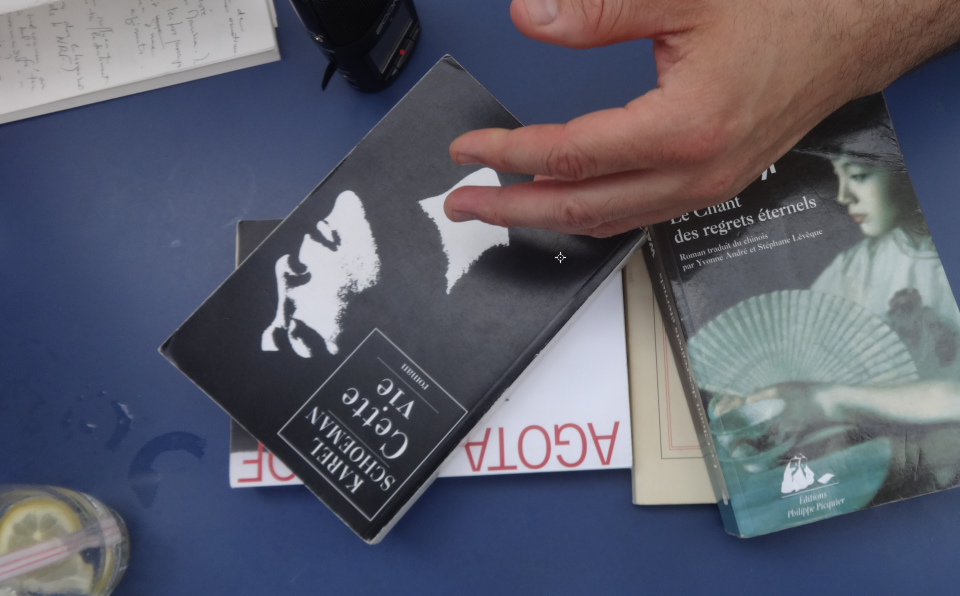 Comme tu me l'as demandé. Mais lesquels prendre ? Il y en a un qui est une sorte de livre de chevet : Gioconda, du grec Nikos Kokàntzis ; il y a Cette vie, de Karel Schoeman, chez Phébus. C'est un romancier afrikaner auquel je tiens. Cette auteure chinoise, Wang Anyi, dont le titre est une poésie : Le chant des regrets éternels.