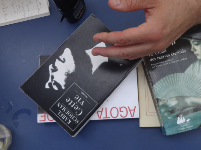 Je ne suis pas un lecteur classique. Quand j'aime le livre d'un auteur, j'ai tendance à ne pas vouloir aller au-delà. Il y a des exceptions, mais je ne cherche pas à lire d'œuvres complètes. Tu m'as vu faire quand je rentre dans une librairie, j'y vais à l’aveugle. Je navigue à vue. J'y passe du temps.