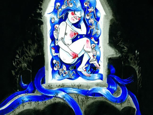 La malice affleure toujours au coin du trait. Et quand la page est inondée de bleu c'est pour mieux y voir la sensualité débordante de son héroïne. Car avec Azolla nous sommes et dans le conte et dans l'ivresse biblique. Pas de Blanche-Neige, mais un mari chasseur, une femme qui se multiplie comme des petits pains, un déluge. Tout est fait pour nous déstabiliser et ça marche! De cette lecture on sort sinon renversé, tout au moins troublé.
