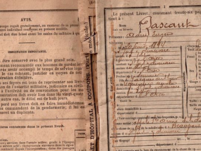 Des feuillets fatigués. La douceur du chiffon. Une couleur beige ocre. Marbré de taches brunes. Un vieux livret perdu, oublié, puis retrouvé, comme par miracle, au fond d’un grenier. C’est celui de Guillaume, le grand-père de Marie-Hélène Prouteau, un grand-père qu’elle n’a jamais connu.