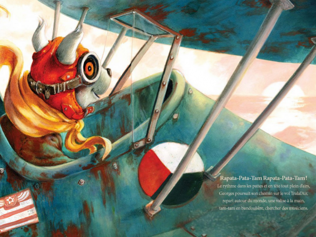 "En avant la zizique !” nous dit Gérard Lambert-Ullmann, qui vient de lire le livre d’enfant Du rythme dans les pattes de Marie Tibi et de Chiara Arsego.