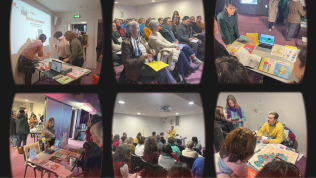 Reconnaissables à leurs gommettes colorées, les groupes ont ensuite participé à un speed-dating avec les maisons d’édition jeunesse de Coll.Libris. Pierre de plumes, MeMo, le Lumignon, ZTL Zétoolu, Six citrons acides, Léon arts & stories, La Cabane bleue. L’occasion de mettre en lumière la richesse et la qualité des éditeur.ices jeunesse en Pays de la Loire, et d’échanger autour des lignes éditoriales, des collections, des titres de fonds indispensables en librairie comme en bibliothèque, et des possibilités de médiation.