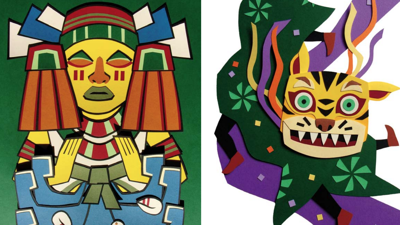 Je fais du papier découpé depuis longtemps, suite à la découverte d’un court-métrage de Michel Ocelot, Les Trois Inventeurs. Ce film d’animation n’est composé que de silhouettes découpées et pliées dans du papier blanc, avec des napperons en guise de roues, d’engrenages… Je l’ai trouvé incroyable et c’est ce qui m’a donné envie de commencer. J’utilise uniquement des couleurs unies, brutes, même si je me suis essayée aux papiers imprimés au début. Je compose avec les couleurs que je trouve, ça fait partie des contraintes. Mon style est très tranché, d’ailleurs je découpe au cutter. Le terme « ciselé », évoqué lors des deux journées de formation à Paris, décrit aussi très bien mon travail. Ce que j’aime, c’est manipuler les formes, les assembler, un peu comme un jeu de construction. J’apprécie le côté ludique de cette technique.