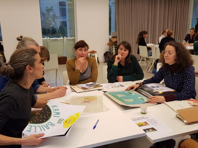 À Paris, les deux journées de formation ont été l'occasion pour les illustrateurs.trices de présenter leur travail devant des éditeurs et éditrices jeunesse dont Angèle Cambournac (Seuil), Alice Nussbaum (Grasset)/ Christophe Hermelin (Giboulées/ Gallimard), Ilona Meyer (éditions des élephants), Camille Guénot (Kaléidoscope)… et également de rencontrer Emmanuel de Rengervé du Snac et Florence-Marie Piriou de la Sofia.