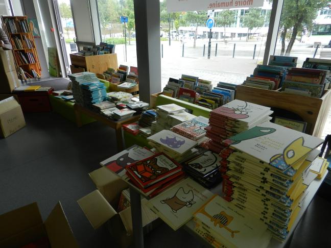 Pour ce qui est des « défectueux », - même si je n’aime pas trop ce mot -, c’est-à-dire des livres retournés parce qu’abîmés, nous faisons des dons, - de milliers de livres. Nous travaillons principalement avec une ONG, Biblionef, mais aussi en lien avec le quartier de Malakoff à Nantes, ainsi que des classes d’éducation prioritaire, des bibliothèques, des espaces de lecture, des associations d’aide aux migrants, ATD quart-monde, le Secours populaire, etc.