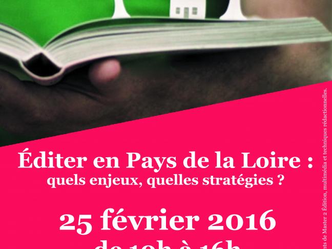 Le jeudi 25 février 2016 aura lieu la Journée des Éditeurs, organisée par les étudiants du Master 2 “Édition, édition multimédia et rédaction professionnelle” de l’université d’Angers, à laquelle vous êtes tous conviés.