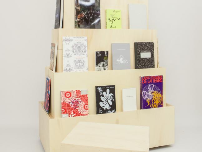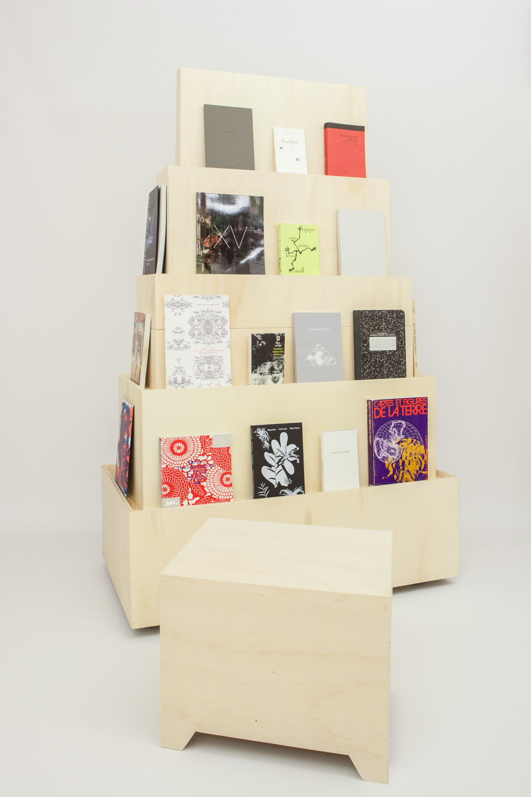 Le Kiosque, c’est d‘abord un meuble déplaçable, conçu par les designers de Fichtre, réalisé par des détenus, qu’on peut déplier en présentoir pour montrer, de face, les livres à emprunter.