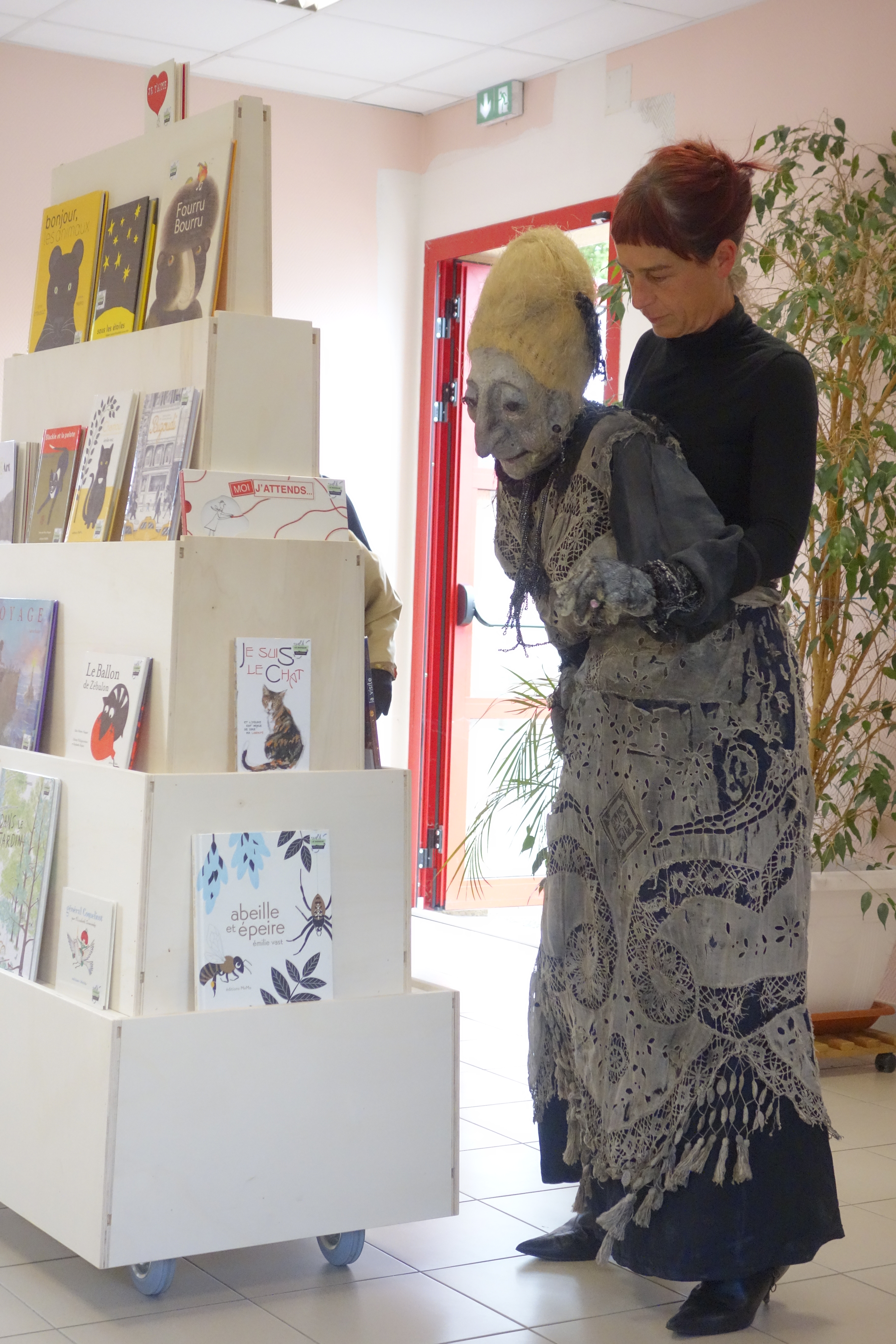 Et puis ont commencé les déambulations avec le meuble-kiosque dans tous les établissements pénitentiaires de la Région (celui de Laval reste à visiter). Une expérience particulièrement forte et marquante pour tous : détenus, mais aussi surveillants et... marionnettistes. Circulant dans tous les espaces de la prison ; s’autorisant toutes les libertés, chantant, dansant ; suscitant un contact vivant et ouvert avec les livres de diverses manières (jeux, humour, échanges libres en individuels ou en groupe, etc.) ; faisant du kiosque un espace chaleureux de convivialité, les grandes marionnettes portées ont surpris, réjoui, ému… et ont parfaitement honoré leur contrat : chaque fin de journée, les kiosques étaient vides.
