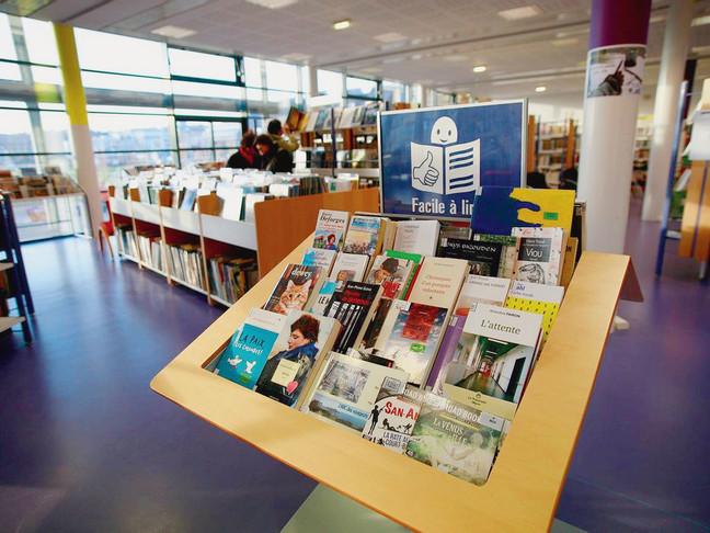 - des espaces identifiés, pour tous les publics, en particulier les personnes en difficulté avec la lecture, qui présentent une sélection d’ouvrages « faciles à lire » ;