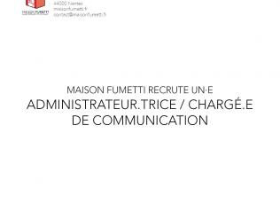 Maison Fumetti recrute un·e Administrateur.trice / chargé.e de communication Publié le 10/03/2020 Type d'offre Emploi Maison Fumetti est à la fois un outil pour les praticien·ne·s du dessin et de la bande dessinée (professionnel·le·s et… Lire la suite Offres